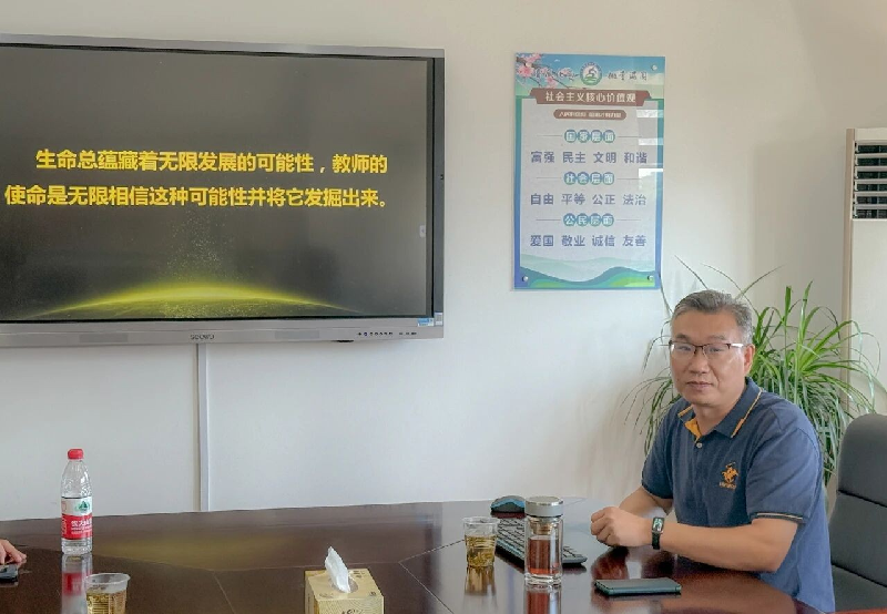 新教师刘俊豪以深深的鞠躬表达了对带教教师的诚挚敬意。他承诺,将以饱满的热情、谦虚的态度和勤勉的行动,尊师重教、知行合一,努力成长为学生喜爱、家长放心、学校信任的优秀教师和班主任。