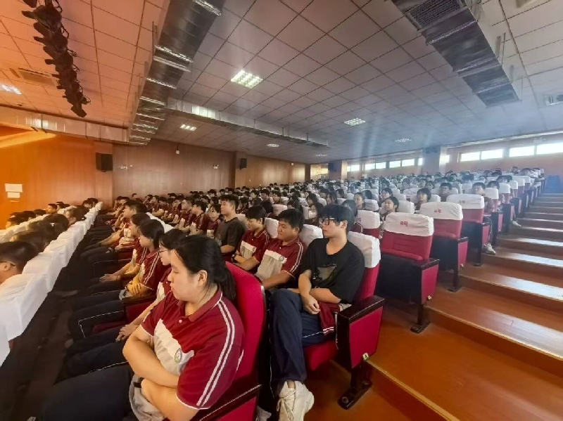 2025年9月11日,我校召开高二年级学生大会。高二年级分管领导钱海珍副校长、教学处副主任施永华、年级组长胡慧、全体班主任及学生参加会议。会议由年级分管领导钱海珍副校长主持。