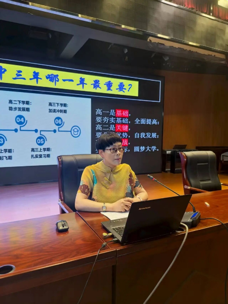 会议最后,钱老师着重强调了高二作为高中生涯中关键转折点的重要性,称其为“成长的分水岭”。她指出,高二不仅是选科与目标定位的决定性时期,更是思想提升与能力积累的关键阶段。钱老师对全体同学提出了殷切期望。她鼓励大家做到自觉、自省和自律,将精力集中在学习上。希望同学们能够制定明确的学习目标和计划,以积极的态度面对即将到来的高考挑战。