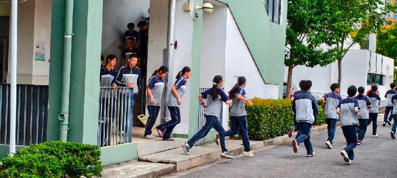 全体师生按要求疏散至指定集结区域——高二、高三年级抵达操场,高一年级到达南篮球场。各班及时清点人数并逐级上报,顺利完成全员安全撤离。
