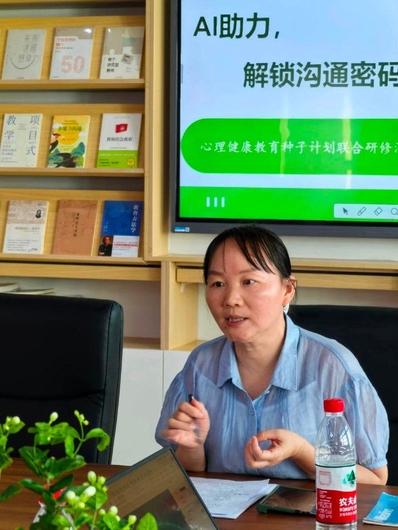 本次研修活动的核心听课环节在求真楼 3 楼录播教室举行。徐晓翠老师以“AI 助力,解锁沟通密码”为题,带来了一堂生动且富有创新性的心理健康课。课堂上,徐老师巧妙融入 AI 技术,通过案例分析、小组讨论、AI 沟通模拟等形式,帮助学生理解如何运用非暴力沟通四要素提升人际沟通能力,增强人际交往中的自我效能感。整堂课设计新颖、体验性强,不仅让学生收获满满,也为在场听课的老师们提供了具有一定启发的教学范例。