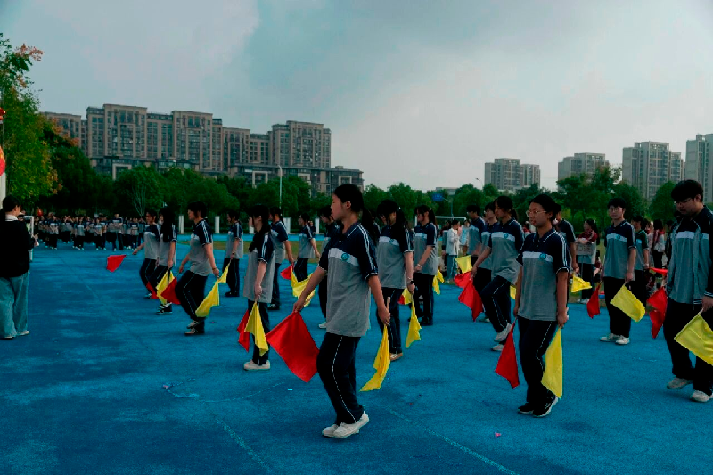开幕式在庄严的升旗仪式中拉开帷幕。伴随着激昂的入场音乐,24个班级方阵依次走过主席台。红旗方阵炽热如焰,象征着青春的热血与信仰;各班队伍精神抖擞,步伐铿锵,口号响亮,展现出二中学子的朝气、进取与坚定。