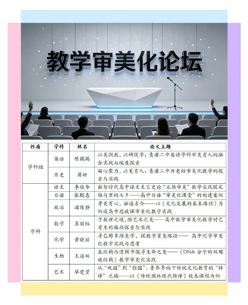 论坛上,教研组代表聚焦团队建设与资源整合,分享审美化教学探索经验。