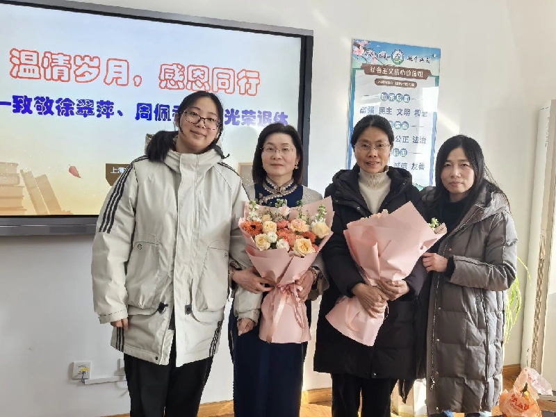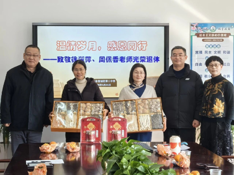 岁末冬暖,情满校园。2026年1月21日下午,青浦二中会议室暖意融融,一场饱含敬意与不舍的荣退欢送会在此温情启幕。学校领导与朝夕相处的同事们齐聚一堂,向深耕教坛数十载的徐翠萍、周佩香两位老师致以崇高敬意,共忆执教岁月,共叙深厚情谊,为她们的教育生涯画上圆满句号。