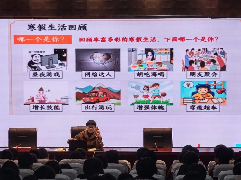 针对部分同学开学后出现的疲倦、焦虑等问题,高二年级分管领导钱海珍老师指出,“假期后综合征”影响学习节奏,高二下学期是学业分化关键期,必须尽快收心归位,调整作息与心态,主动减少电子产品干扰,迅速进入学习正轨。